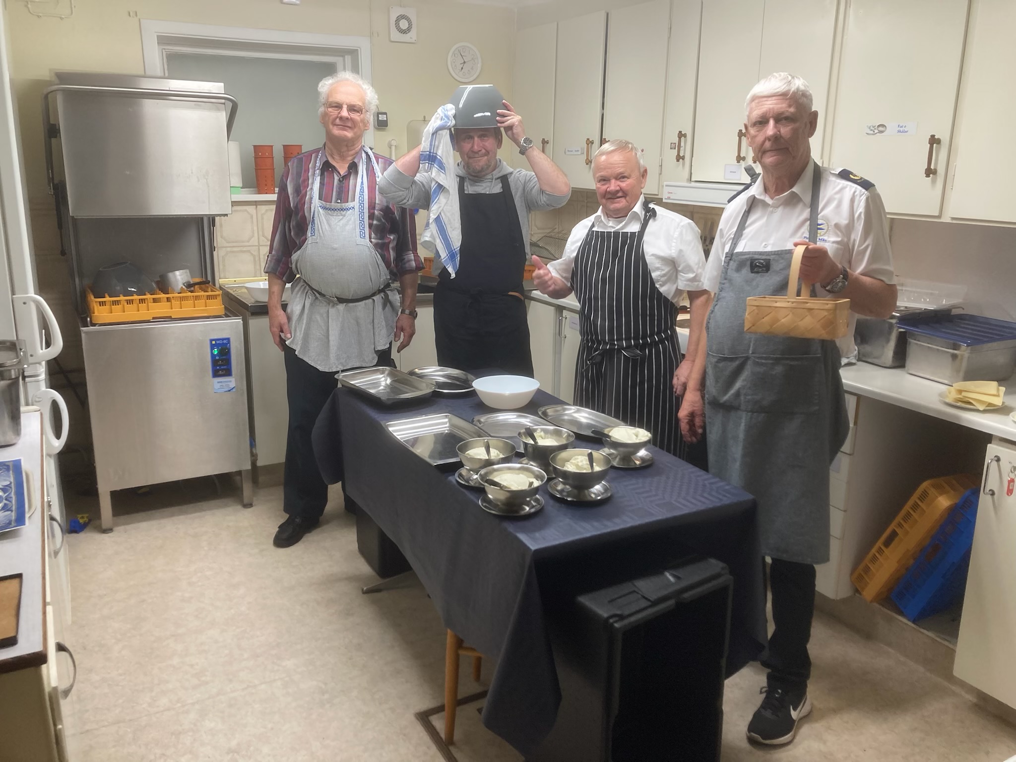 Traditionell kamratafton avhölls den 30 oktober med professionellt komponerad ärtsoppa och perfekt tempererad punsch. Pannkaka med sylt och grädde avslutade detta smakfyrverkeri. Vi var närmare 40 deltagare och som vanligt fungerade köket som alltid perfekt, tack vare Mats och hans glada köksgäng.