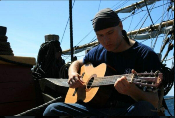 Lite musik på däck ackompanjerad av gitarr och vågornas brus